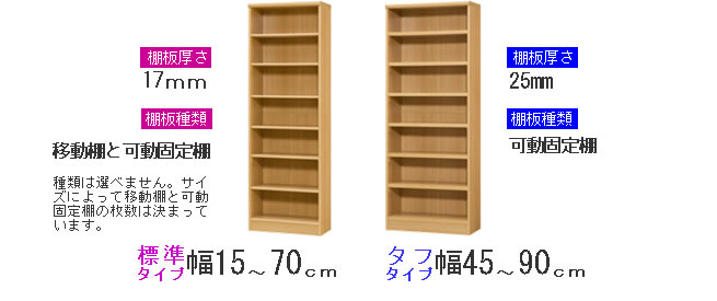 | 標準タイプ 厚さ17mm 本体ラック「標準タイプ」の棚板です。また、標準タイプ17cmm厚さの棚板には、「移動棚」「可動固定棚」の2種類があります。 |