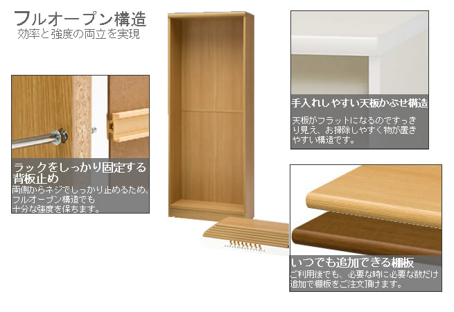 固定板の無いフルオープン構造 だからできる効率的な収納