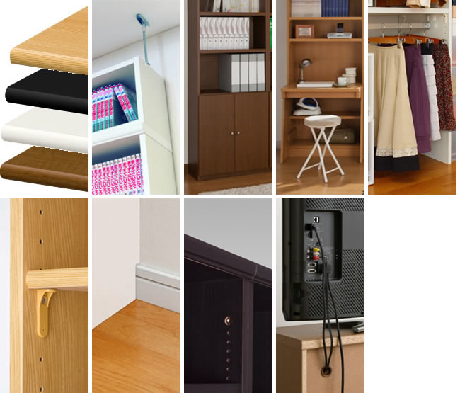 奥行は3タイプから選択が可能です。収納したいアイテム、お家のスペースに合わせて、最適なサイズをお選びください。
